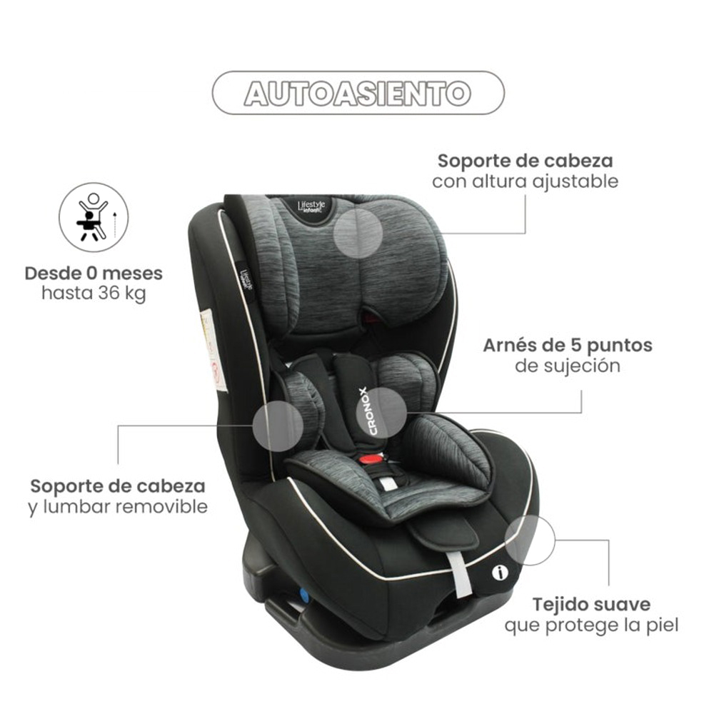 El Autoasiento Cronox de la marca Infanti es la opción ideal para brindar a tu bebé la máxima seguridad y comodidad durante cada viaje en automóvil. Cuenta con su instalación sencilla y suaves telas de alta calidad, protegiendo la piel delicada de tu pequeño, permitiéndote disfrutar de cada trayecto con total tranquilidad. Su diseño se adapta al crecimiento de tu bebé, siendo adecuado para el grupo 0 a 3, lo que significa que puede usarse desde recién nacidos hasta niños de hasta 36 kg. También con su arnés de 5 puntos de sujeción garantizaras una sujeción segura y confiable en cada viaje. Además, podrás instalarlo contramarcha, mirando hacia atrás para bebés desde recién nacidos hasta 13 kg, y mirando hacia adelante para niños de 9 a 25 kg.