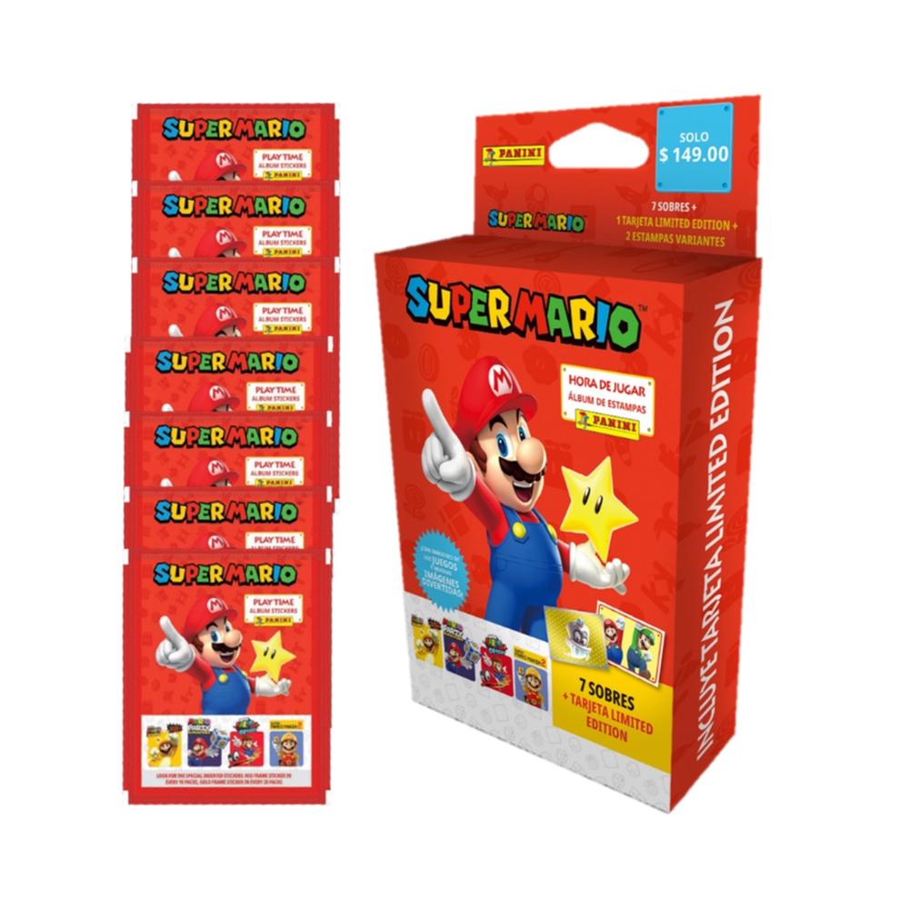 ¡Es hora de jugar y salvar el Reino Champiñón! El blíster Panini te ofrece siete sobres de la colección oficial Super Mario Play Time. Es idóneo para completar tu álbum, el cual incluye actividades interactivas y contenido inspirado en cuatro de los videojuegos más icónicos de la franquicia. Encuentra la magia de tus personajes preferidos, además de una tarjeta edición limitada y dos estampas variantes.