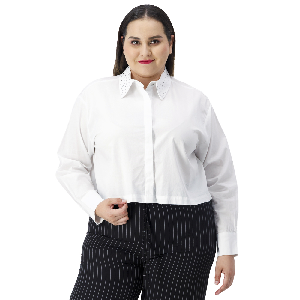 Blusa Mujer Con Aplicaciones En Cuello Mxstaza