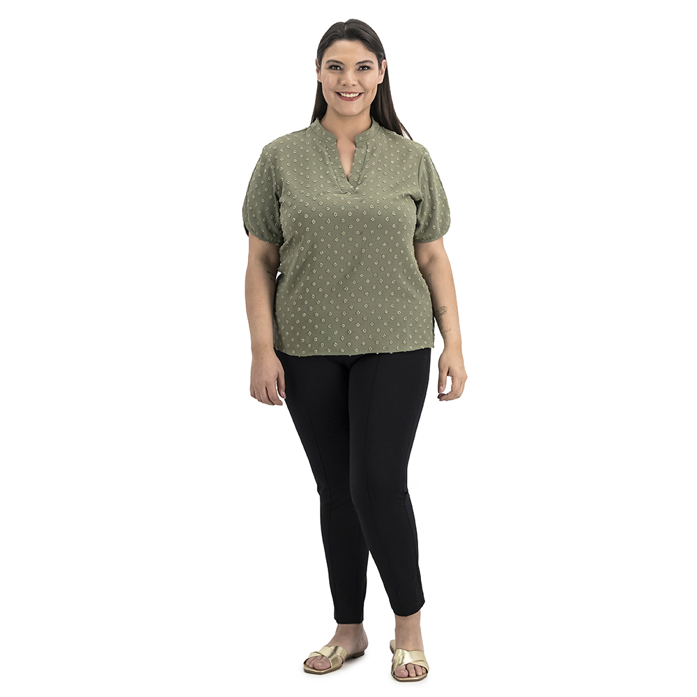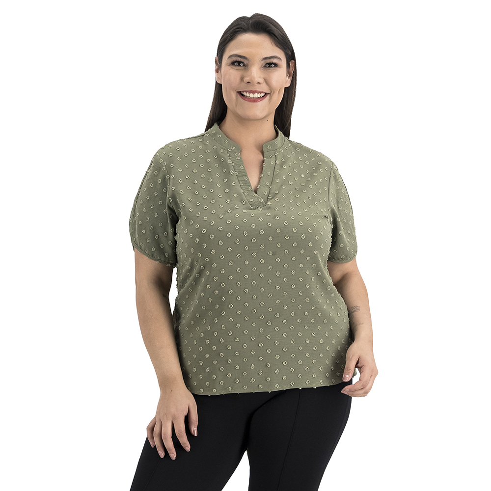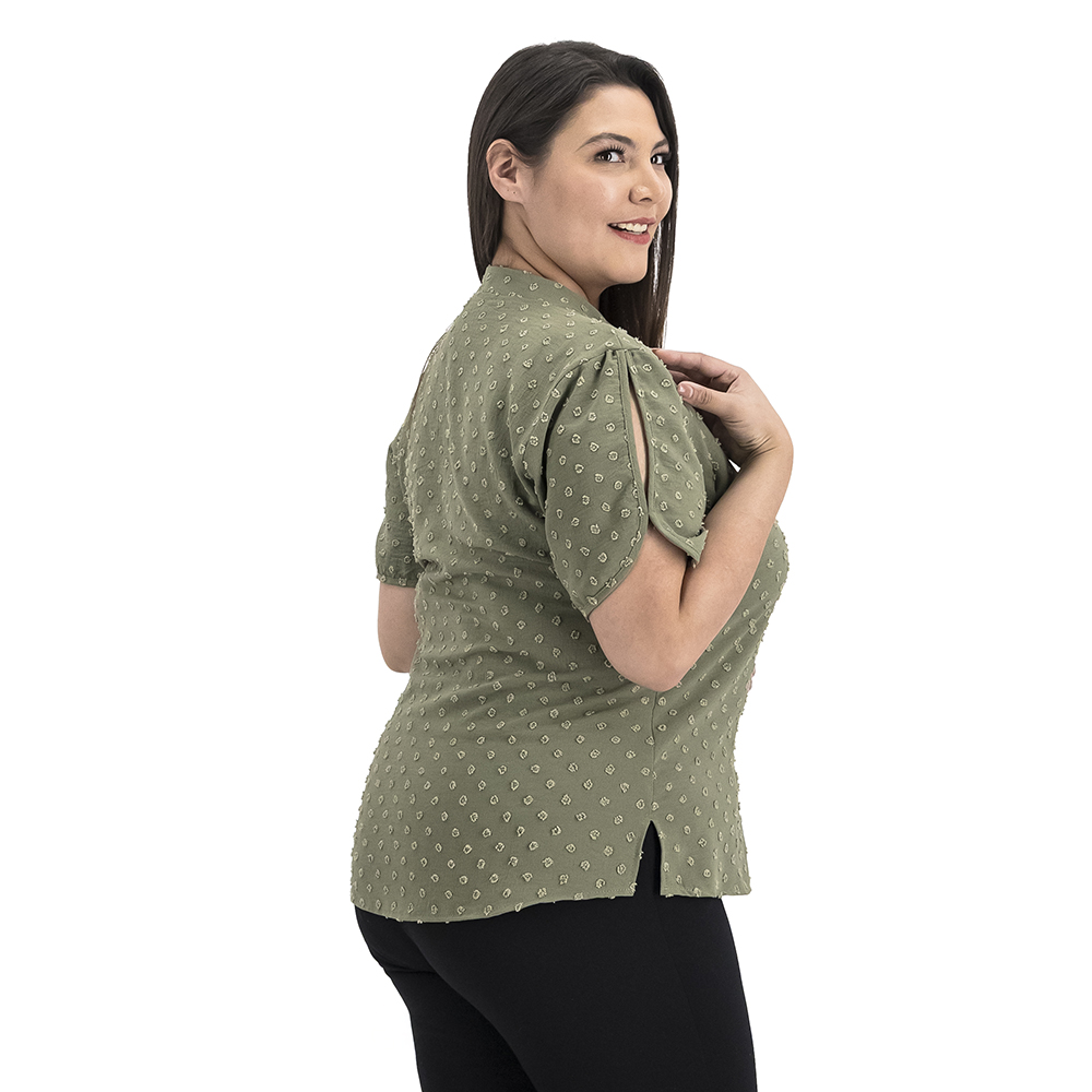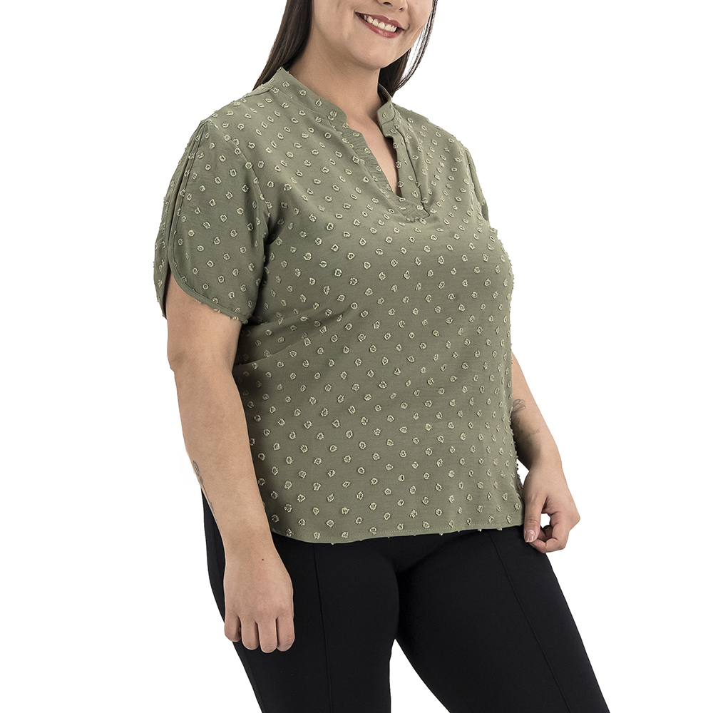 Con su diseño de puntos tejidos, esta blusa es moderna y versátil. Ideal para un look casual o más arreglado, ¡nunca pasará de moda!