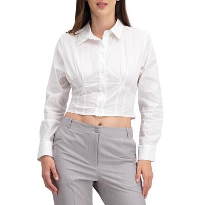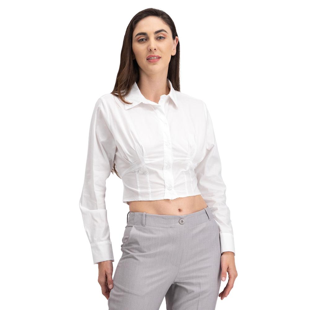 Esta blusa de mujer con diseño liso y botones al tono combina elegancia y comodidad, perfecta para ocasiones formales o casuales, mientras que el cuello camisero aporta un toque clásico y las mangas largas ofrecen versatilidad y estilo durante todo el día.