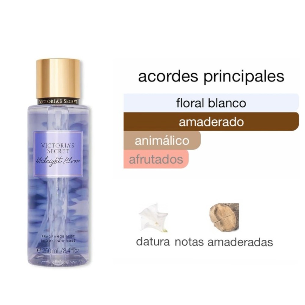 El body mist Victoria's Secret Midnight Bloom ofrece un toque de frescura y feminidad con una fragancia floral frutal envolvente. Su fórmula ligera perfuma delicadamente la piel, brindando una sensación refrescante ideal para usar durante el día o la noche. Inspirada en flores nocturnas y frutas maduras, esta body mist es perfecta para complementar tu rutina de cuidado personal
