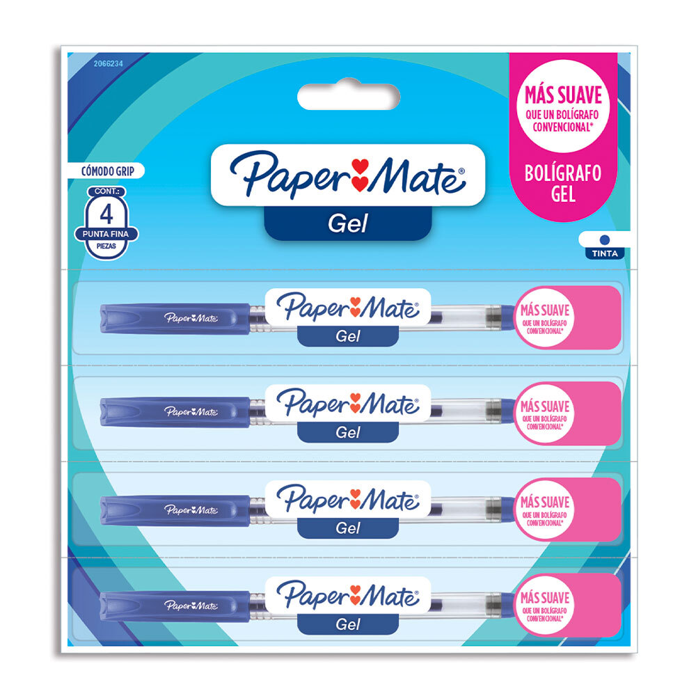 Bolígrafos Paper Mate Gel Punto Fino Azul 4 Piezas