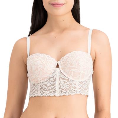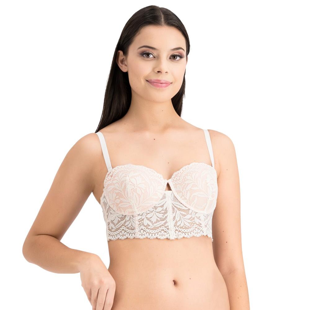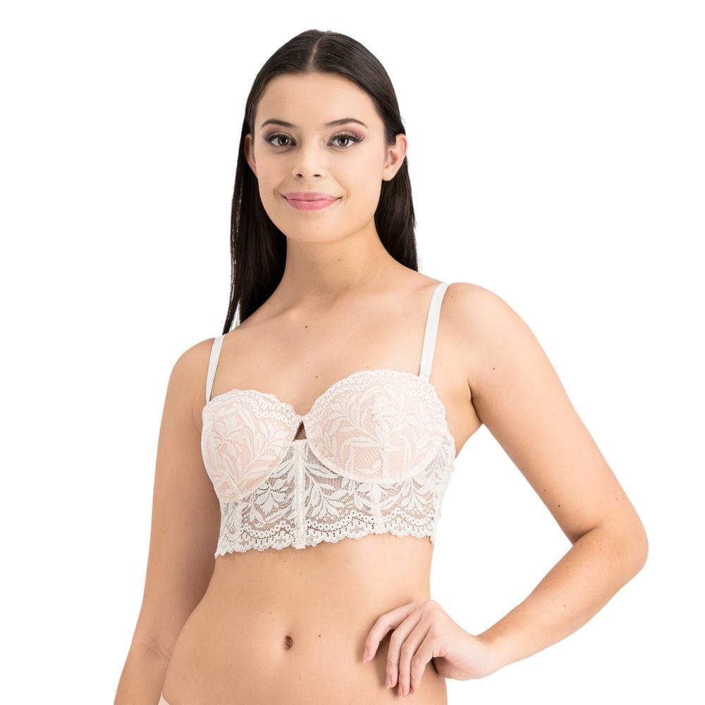 Bralette largo con encaje floral y copas con varilla para soporte. Diseño estilizado y sensual.