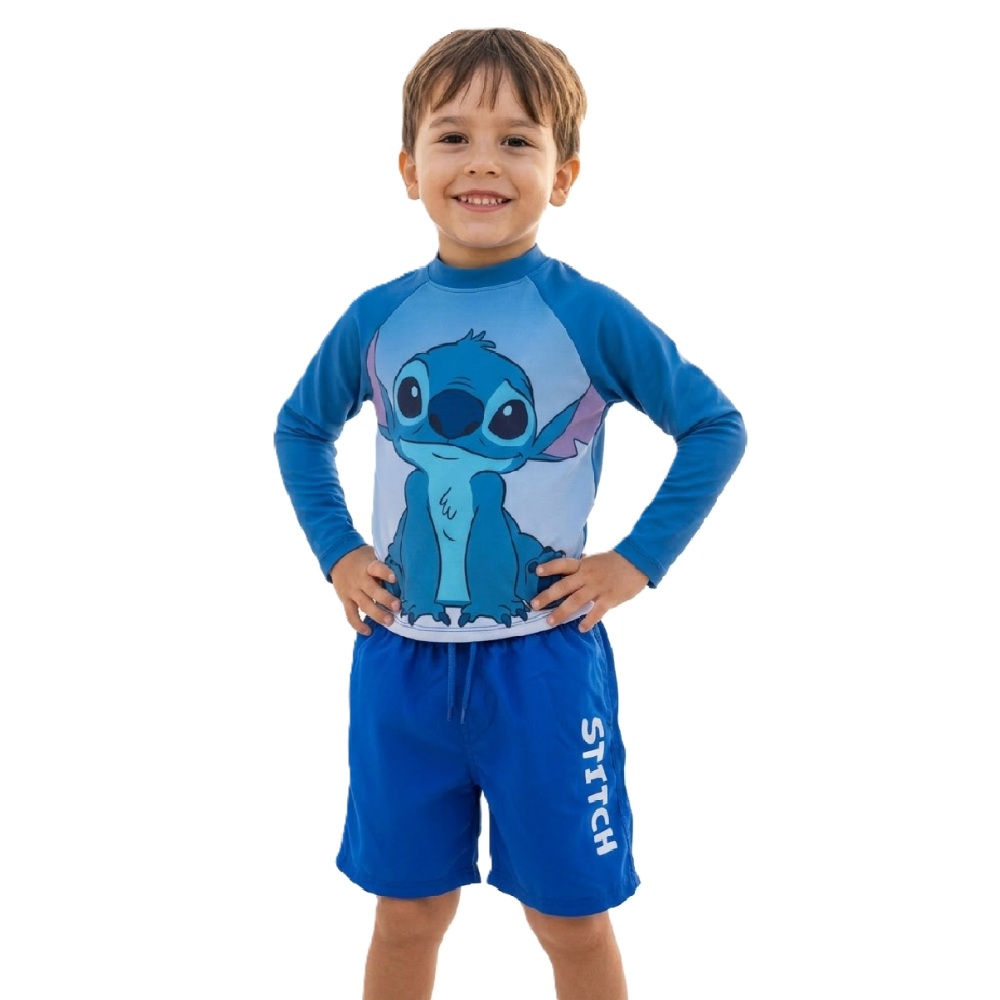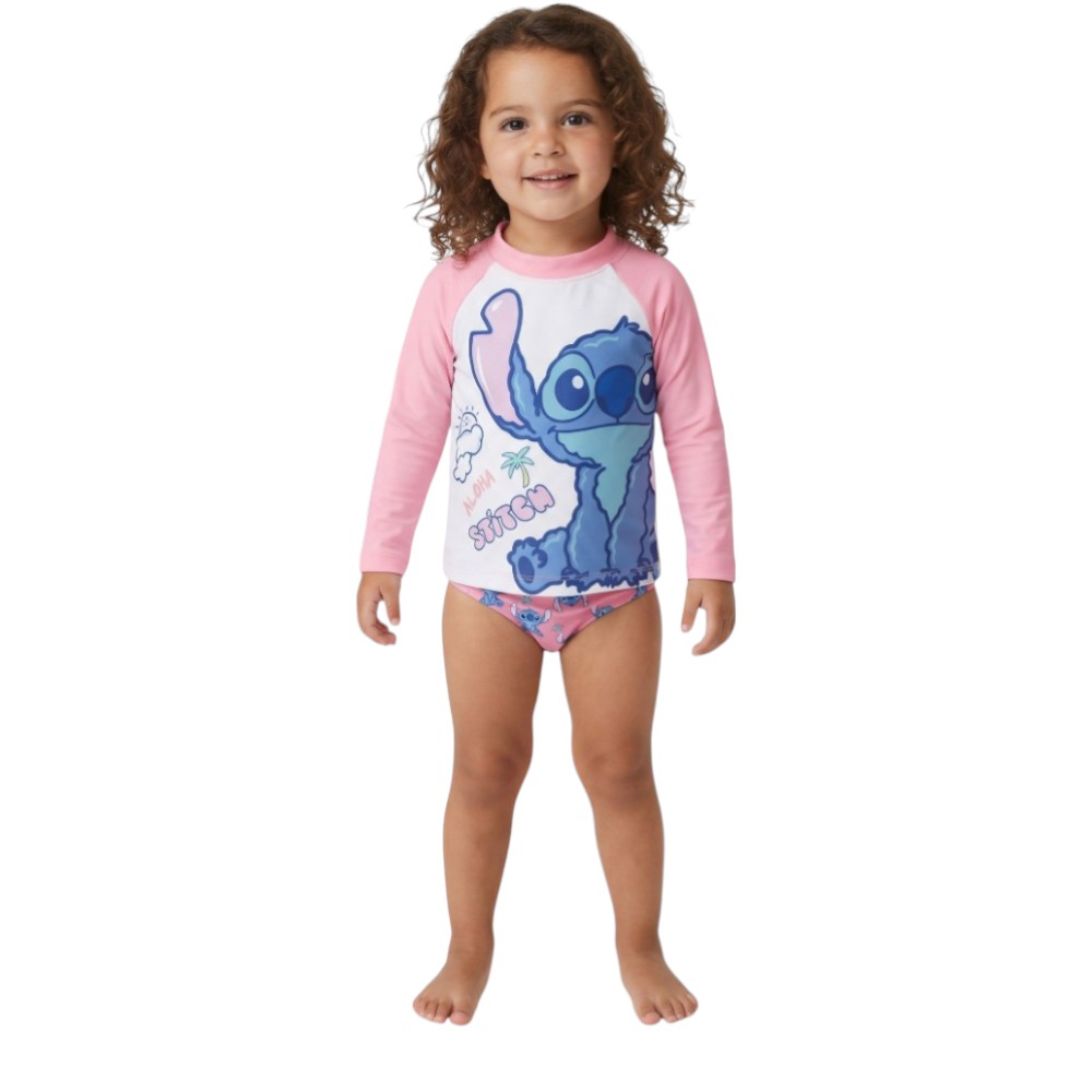 Traje De Baño Disney Bebé Diseño Stitch Manga Larga