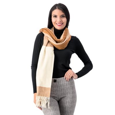 La bufanda para mujer combina un diseño moderno con bloques de color que aportan estilo y personalidad, mientras las barbas le dan un toque único y elegante. Confeccionada en tejido suave, ofrece calidez y comodidad para complementar cualquier look de temporada.