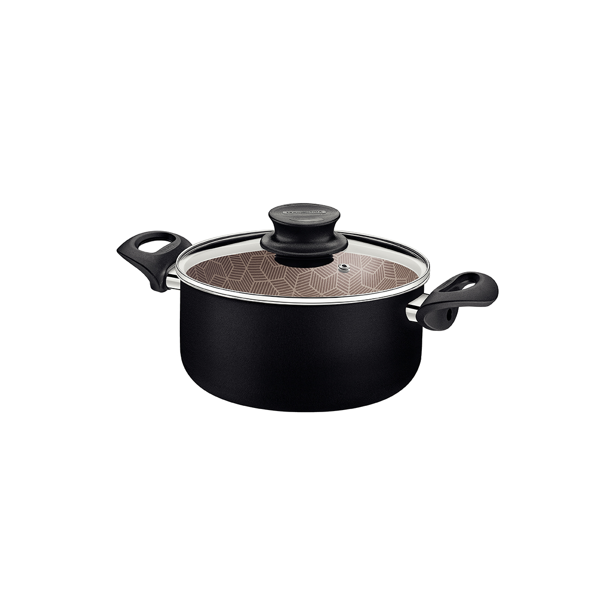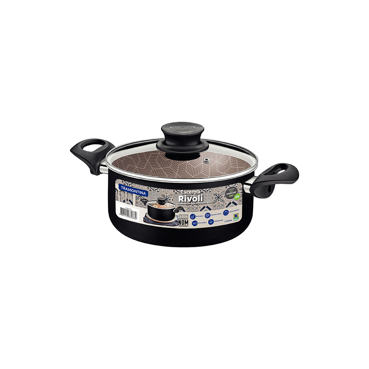 La cacerola Rivoli de Tramontina cuenta con revestimiento interno y externo de antiadherente Starflon Max. Su tamaño de 24 cm y capacidad de 4.9 litros te garantizarán mucha más facilidad para preparar tus recetas diarias. Está fabricada de aluminio de 1.8 mm de espesor. Estas características la convierten en una indispensable herramienta para la cocina, ya que permiten una cocción rápida y uniforme de los alimentos, además de evitar que se peguen en la superficie. Incluye tapa de vidrio templado con agarrador de nailon y posee asas de baquelita antitérmica que, para tu seguridad, no se calientan. ¡La practicidad está garantizada, dado que es sencilla de limpiar y apta para lavavajillas!