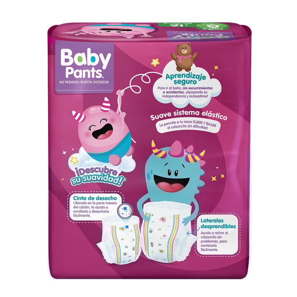 Dale a tu bebé el cuidado ideal que necesita con los calzones entrenadores de Baby Pants, su increíble diseño ayudará a tu pequeña en el aprendizaje a la hora de ir al baño, con su suave sistema elástico le permitira ir sin dificultades. Tan absorbente como un pañal y fácil de cambiar como la ropa interior