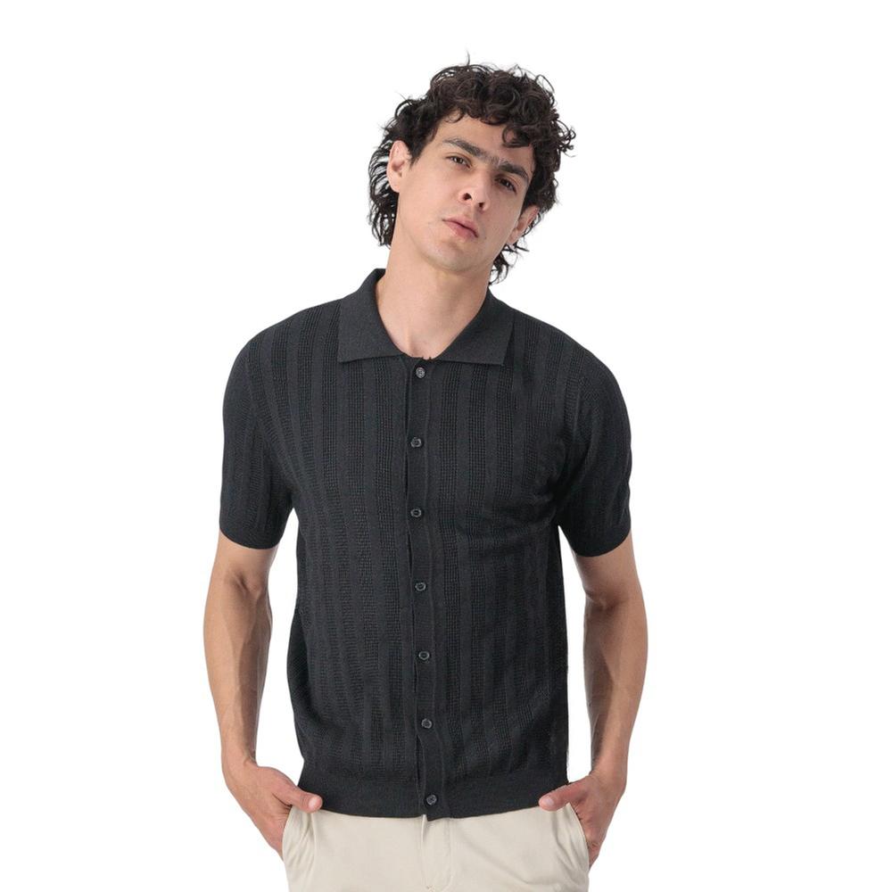 Camisa Hummo Hombre Diseño Rayas Botones Al Tono Manga Corta
