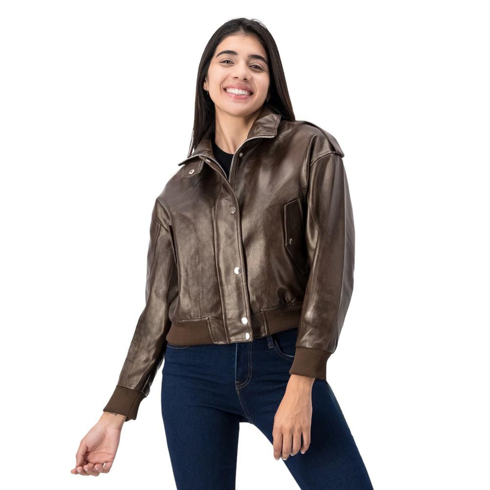Chamarra Mxstaza Mujer Tipo Cuero Cierre De Botones