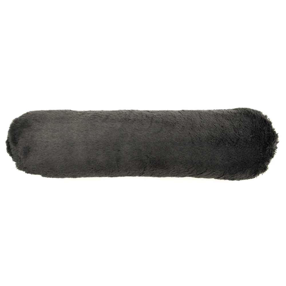 Cojín decorativo de peluche en forma de cilindro, de color gris Oxford. Con medidas de 20x80 cm.