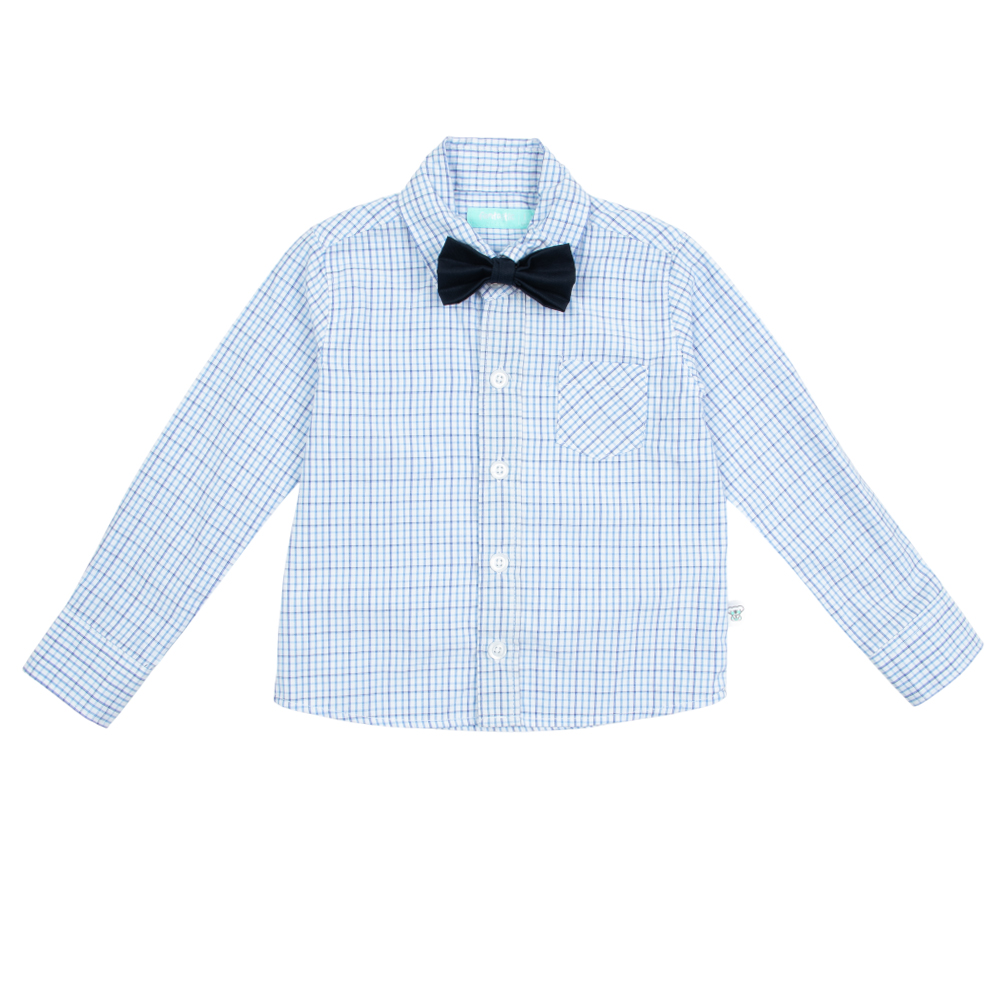 Camisa con manga larga, bolsa en pecho, moño, botones y diseño a cuadros