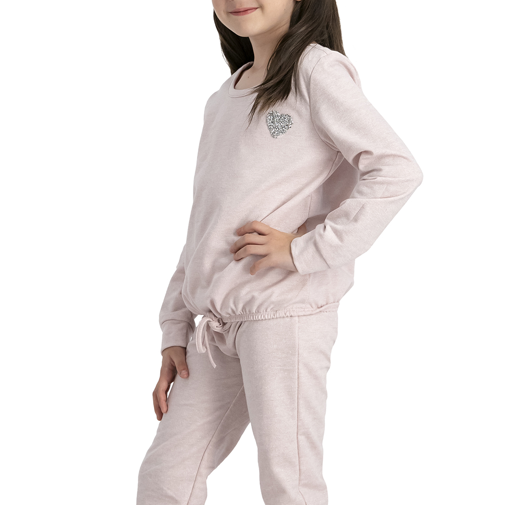 Conjunto de blusa con diseño de corazón en pecho y pants: ¡Un clásico atemporal! Este conjunto es perfecto para cualquier ocasión. La blusa de manga larga y el pants con elástico le darán un toque moderno y casual.