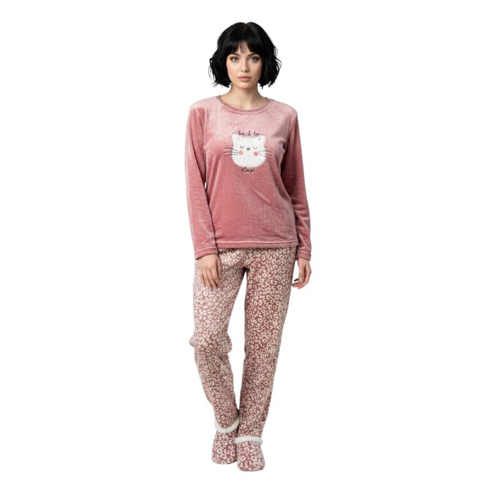 Conjunto Mon Amour Mujer Pijama Suave De Gatito Y Pantuflas