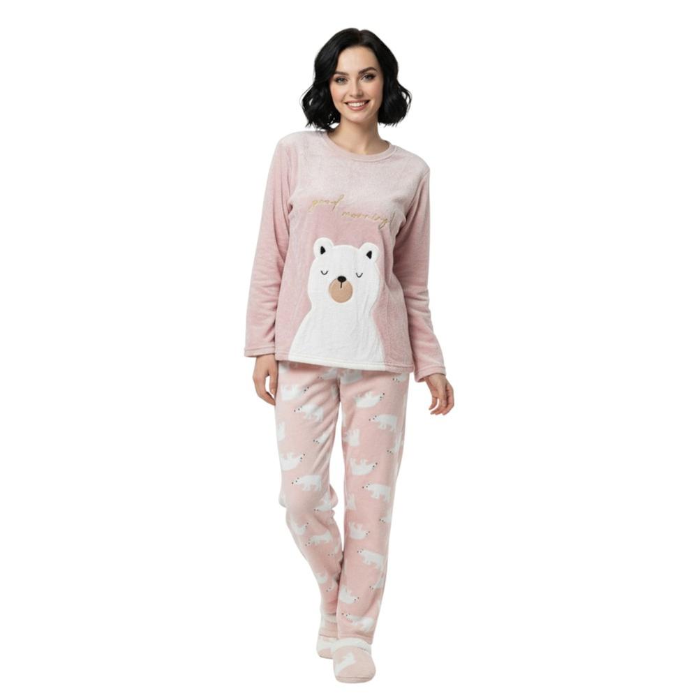 Conjunto Mon Amour Mujer Pijama Suave Y Pantuflas De Oso