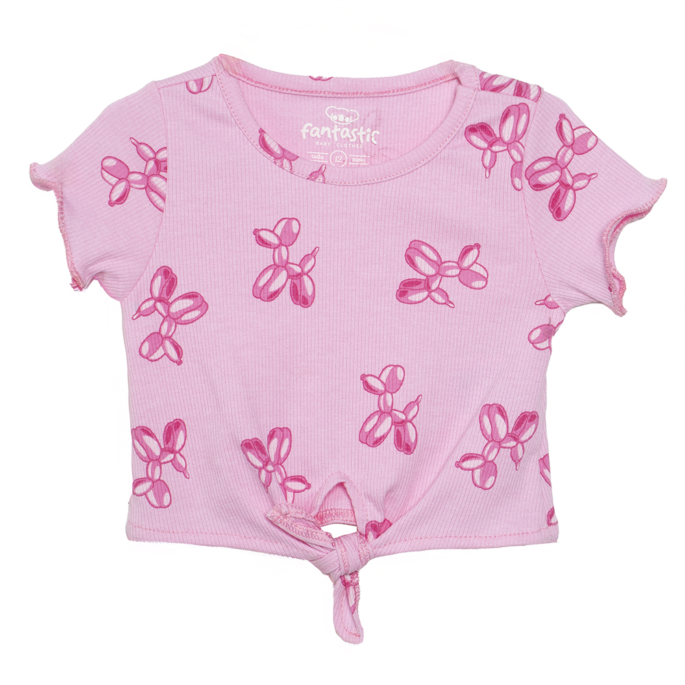 Playera con cuello redondo, manga corta, amarre frontal y diseño full print