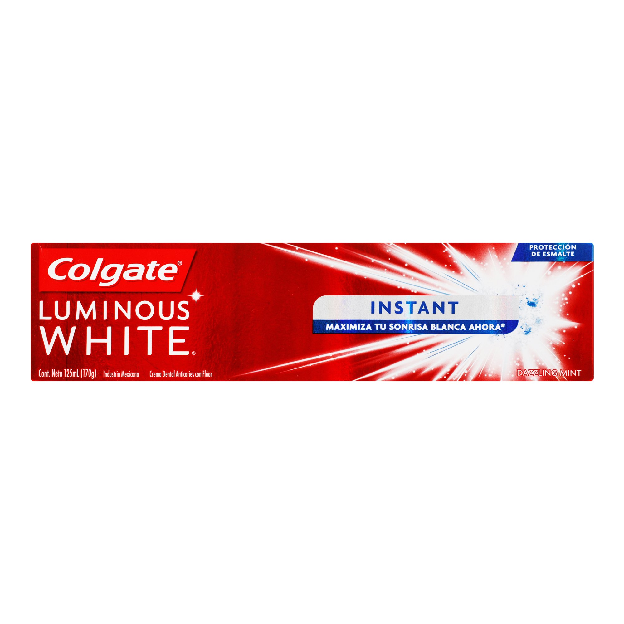 Olvida las manchas amarillas ocasionadas por alimentos y bebidas, cuida tus dientes de la manera más efectiva y segura. La limpieza profunda que te ofrece Colgate Luminous White Instant te ayudará a evitar la formación de sarro y bacterias que se generan en tu dentadura y traen consigo malos olores.