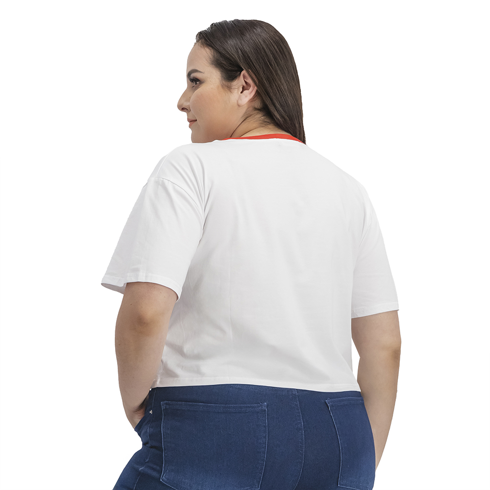 Nuestro crop top de diseño Chicago te ofrece comodidad y estilo en una sola prenda. Su tejido suave y elástico, cuello redondo y manga corta te permiten moverte con libertad.