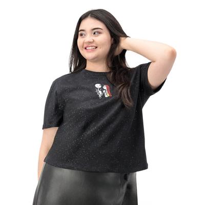 Este croptop de algodón rinde homenaje a "El Extraño Mundo de Jack". Con estampado de Jack y Sally, es perfecto para looks urbanos con un toque gótico y divertido.
