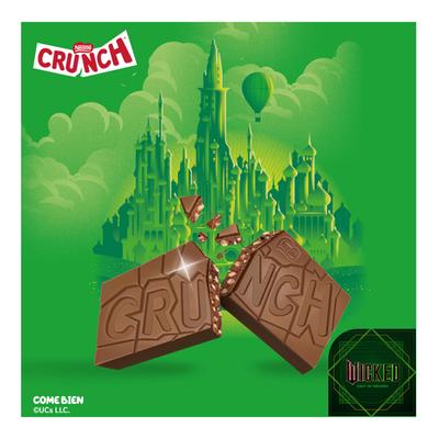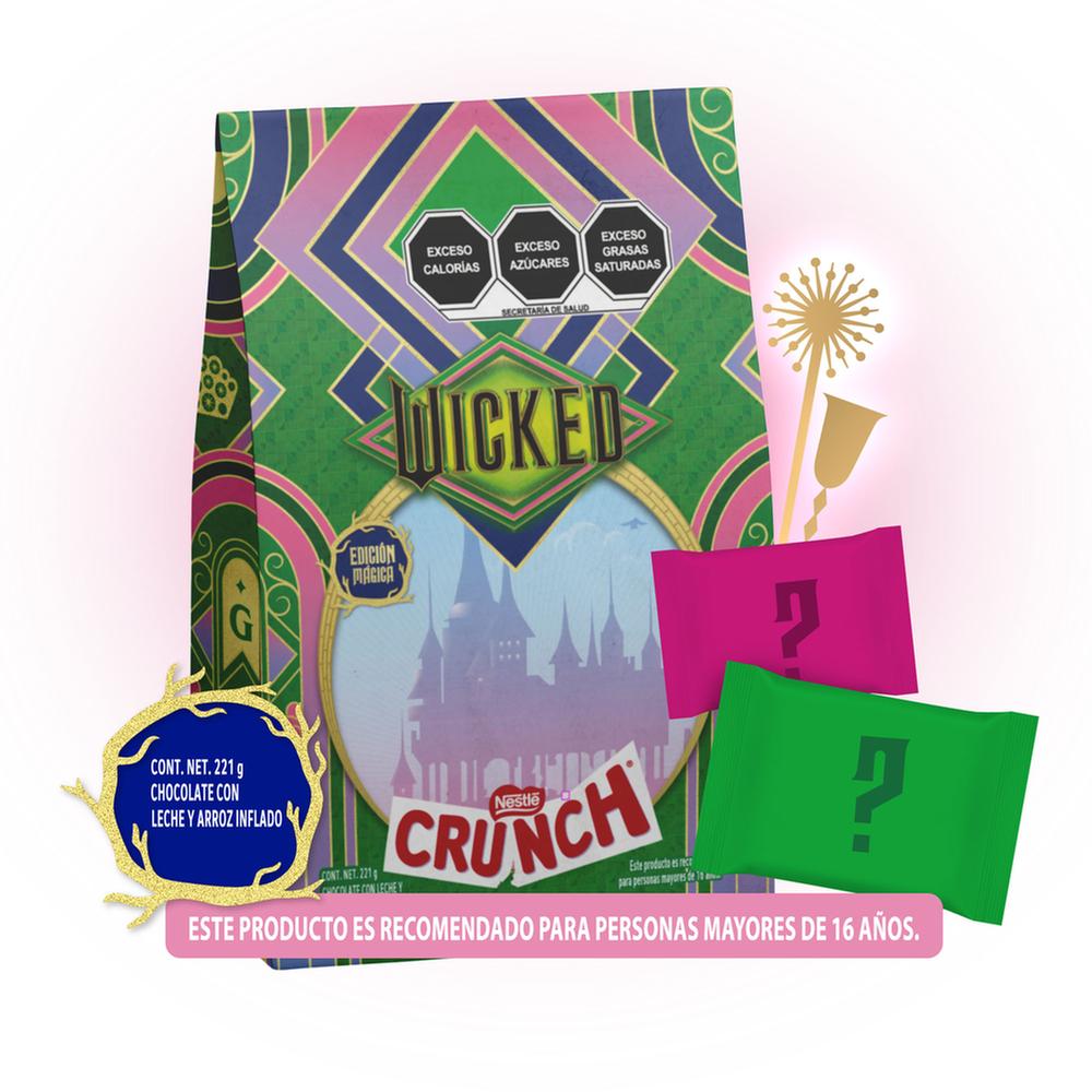 ¡La magia crujiente de Wicked se acerca! Disfruta de la textura única que hace icónica a Crunch: el crujir del arroz inflado bañado en suave chocolate con leche, ahora en una versión especial que rinde homenaje a la magia, el misterio y la valentía. Perfecta para quienes buscan un snack que despierte los sentidos y te haga sentir la emoción de lo extraordinario.