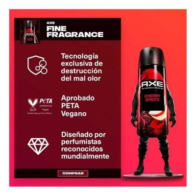 Frescura premium que desafía los límites. ¡Huele a lujo y mantente protegido por 72 horas! El desodorante en barra Axe Cherry Spritz de la Fine Fragrance Collection combina una fragancia premium de cereza con aceites esenciales. Diseñado por perfumistas expertos, ofrece 72 horas de frescura con tecnología que neutraliza el mal olor. Formato práctico en barra para uso diario.