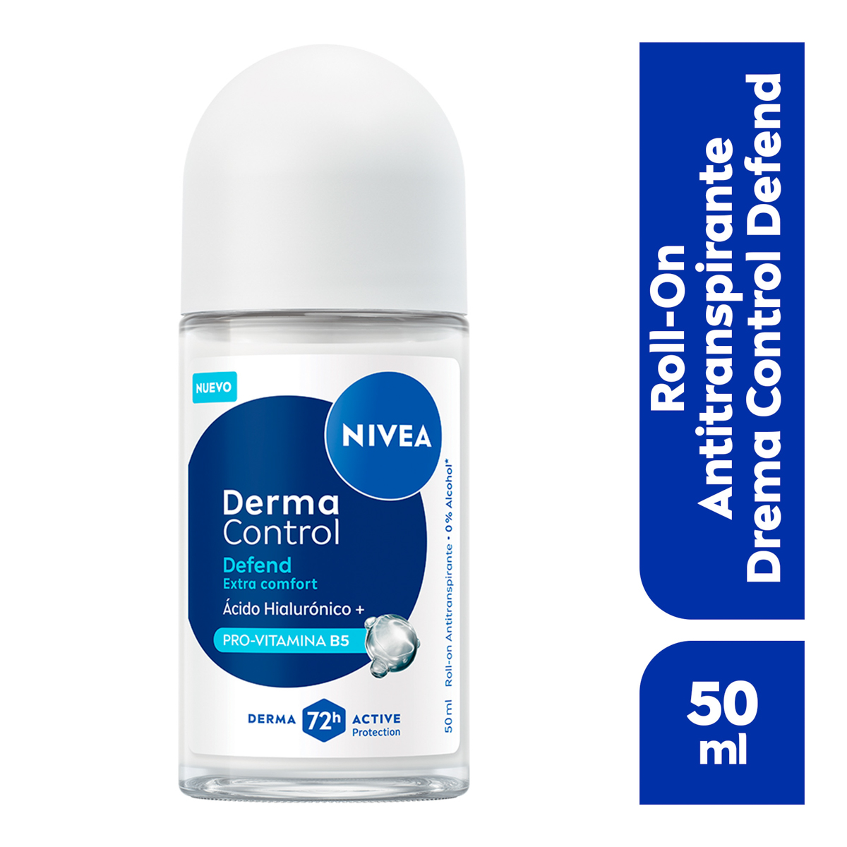 Protección y alivio inmediato con Nivea Derma Control Defend Extra Comfort. Diseñado para quienes buscan eficacia y delicadeza en una sola aplicación, este antitranspirante en roll-on ofrece una solución única para el cuidado de las axilas. Con su innovadora fórmula con tecnología Derma 72h Active, garantiza una protección ininterrumpida contra el sudor y el mal olor, además, con su combinación de ácido hialurónico y pro-vitamina B5, trabaja profundamente para calmar la piel y prevenir la irritación. Es el aliado perfecto para mantenerte fresca, seca y con una sensación de suavidad extrema durante todo el día.