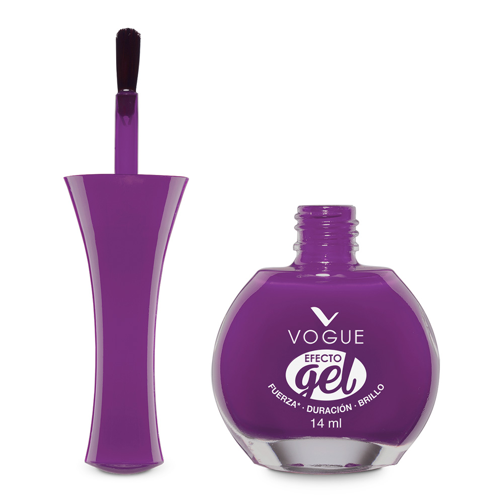 Esmalte Efecto Gel de Vogue. Precisión en la aplicación gracias a su pincel plano. Fórmula de alta cobertura con duración de hasta 10 días con la utilización del Brillo Diamante efecto gel. No requiere Lámpara UV, efecto gelish fácilmente en tus uñas.