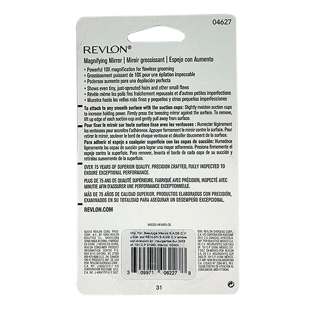 No perderás ni un solo detalle de tu rostro con este espejo de aumento Revlon. Con un potente aumento de 10x, es la herramienta ideal para depilar y realizar tareas de precisión, ya que revela incluso los vellos más pequeños y difíciles de ver. Cuenta con dos ventosas que se adhieren fácilmente a cualquier superficie, permitiéndote liberar tus manos y facilitar tu rutina de belleza.