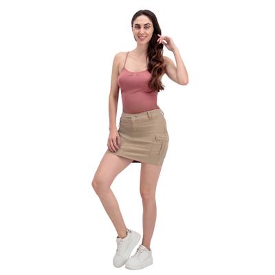 La falda para mujer combina estilo y funcionalidad con su diseño liso ideal para un look casual, mientras las bolsas tipo cargo aportan practicidad y la correa en contraste resalta el diseño, haciendo que cada outfit luzca moderno y equilibrado.