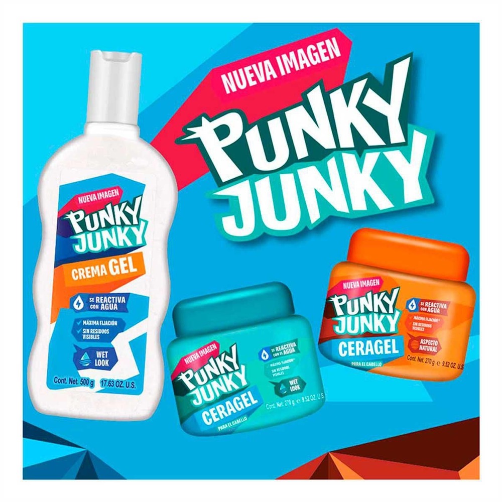 Luce un look increíble con la crema gel para el cabello Punky Junky que te brinda toda la fijación del gel más la textura de la cera, dejando el cabello manejable con la ventaja del secado rápido, todo en un solo producto.