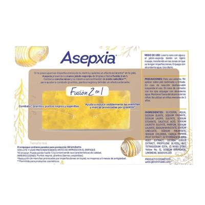 Limpieza profunda y exfoliante en un solo gesto. Di adiós a las impurezas y hola a una piel renovada y uniforme. El jabón esponja Asepxia es un 2 en 1 que combina un jabón con ácido salicílico al 2% para combatir granos y puntos negros, con una esponja integrada de concha nácar que exfolia y aclara la piel. Ideal para pieles con imperfecciones, desobstruye poros y controla el exceso de grasa dejando una textura suave y uniforme.