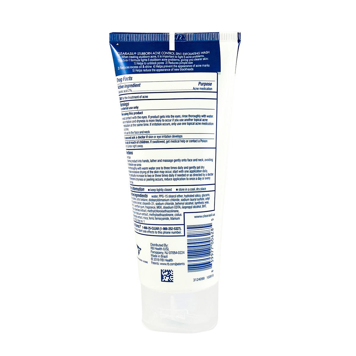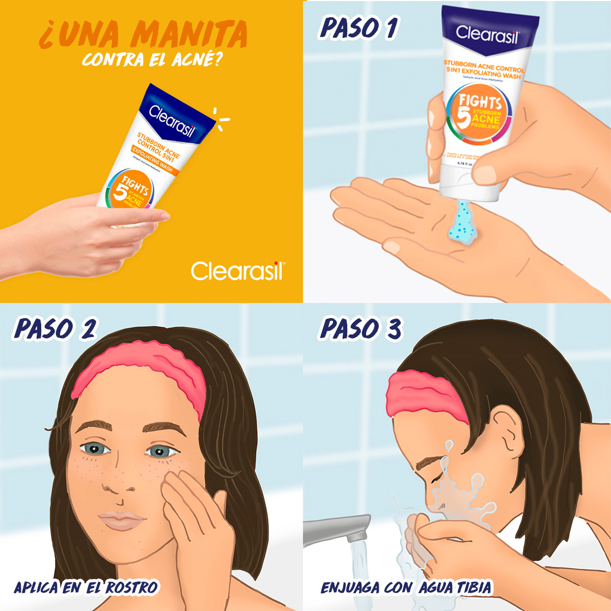 Limpia y cuida tu piel con el Jabón Facial Exfoliante para Acné Clearasil 5 en 1. Gracias a su formulación podrás combatir 5 problemas en 1 solo paso, pues reduce el tamaño de las espinillas, reduce el exceso de grasa y brillo, desbloquea los poros, ayuda a prevenir la aparición de nuevas marcas de acné y ayuda a reducir la aparición de puntos negros. Además, contiene un ingrediente activo de ácido salicílico al 2 % para el medicamento contra el acné, que ayuda a prevenir las imperfecciones para una piel radiante.