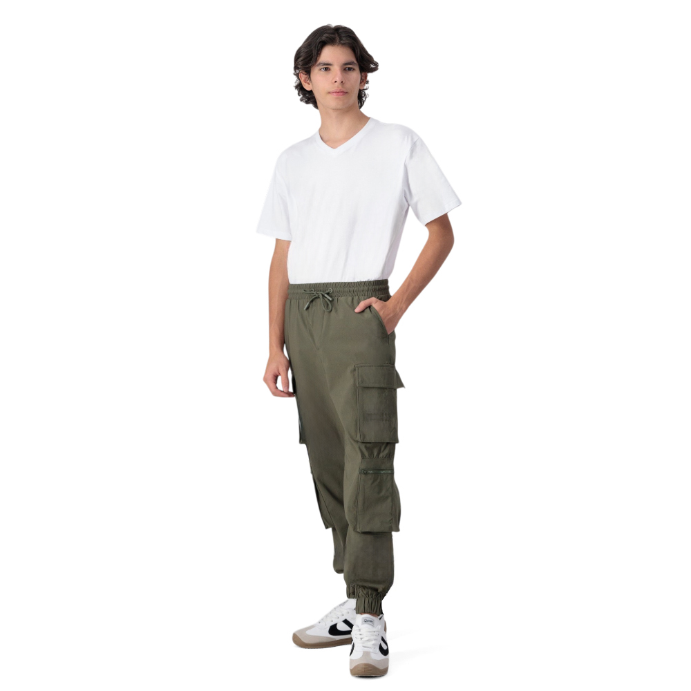 Luce un estilo práctico y moderno con este jogger verde olivo con bolsas en las piernas, ideal para actividades casuales o para relajarte con comodidad. Su diseño funcional combina estilo y versatilidad, ofreciendo ajuste seguro y libertad de movimiento en todo momento. Una prenda esencial para tu guardarropa urbano.