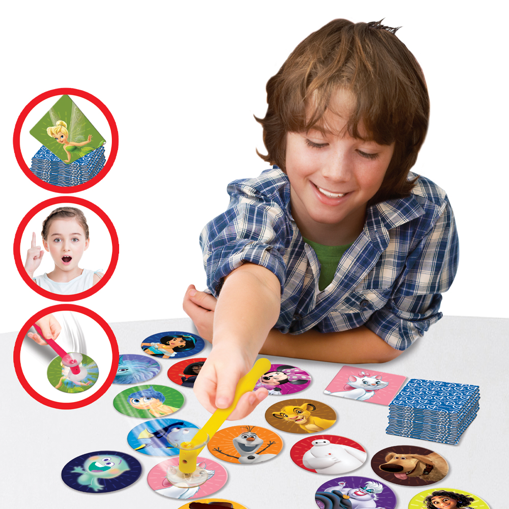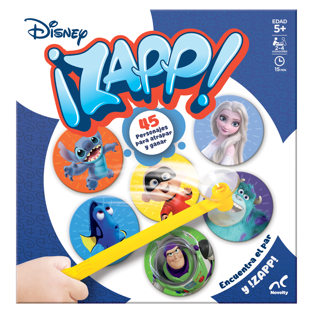 Disfruta muchas horas de diversión junto a tu familia y amigos con el Juego de Mesa ¡Zapp! Novelty. Sé el más veloz e identifica las tarjetas que necesites para acumular la mayor cantidad de pares. Deberás mostrar tu agilidad simultánea con los ojos y manos para convertirte en el ganador de este exclusivo reto con tus personajes favoritos de Disney.