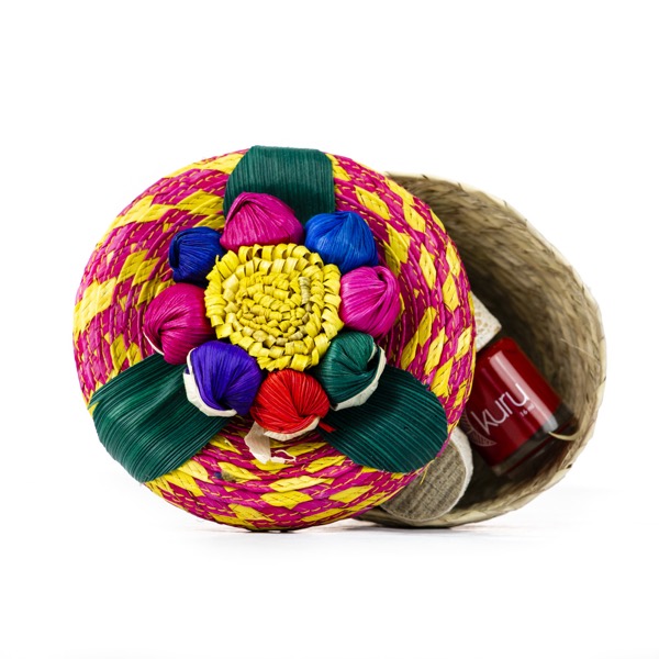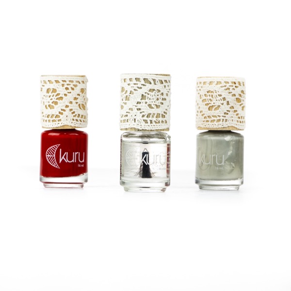 Kuru es una marca mexicana que ofrece esmaltes con fórmula eco friendly, esto quiere decir que además de ser de gran calidad, también son libres de sustancias tóxicas y no son probados en animales. El Kit Raramuri cuenta con los colores Xibalbá y Libra además del transparente y vienen en una pequeña cajita de mimbre.