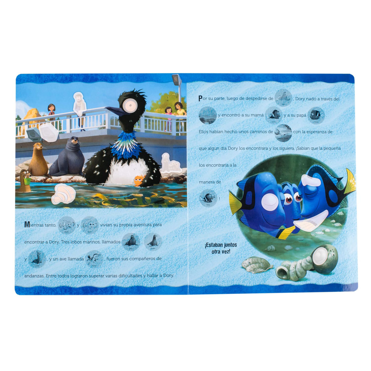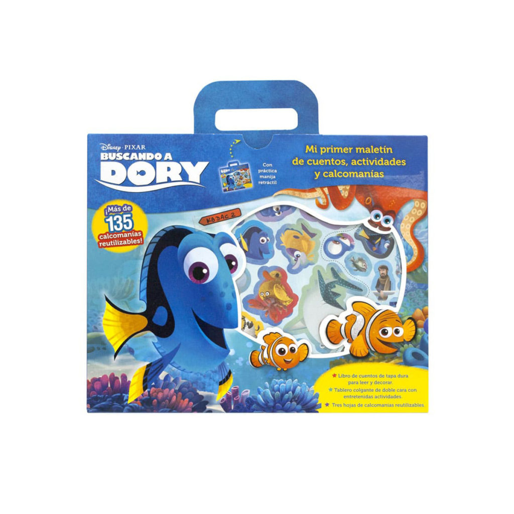 Acompaña a Dory en un viaje inolvidable que la reunirá con sus papás y con nuevos amigos. Utiliza las calcomanías para completar esta historia y diviértete decorando el tablero de actividades. El práctico maletín de cartón con manija retráctil incluye un libro con imágenes a color, un tablero colgante de doble cara y más de 135 calcomanías reutilizables. Esta es una presentación de libro completamente autentica ya que su práctica forma de maletín te permitirá llevar a todos lados y compartir con tus amigos. Cuidados de uso: no mojar.