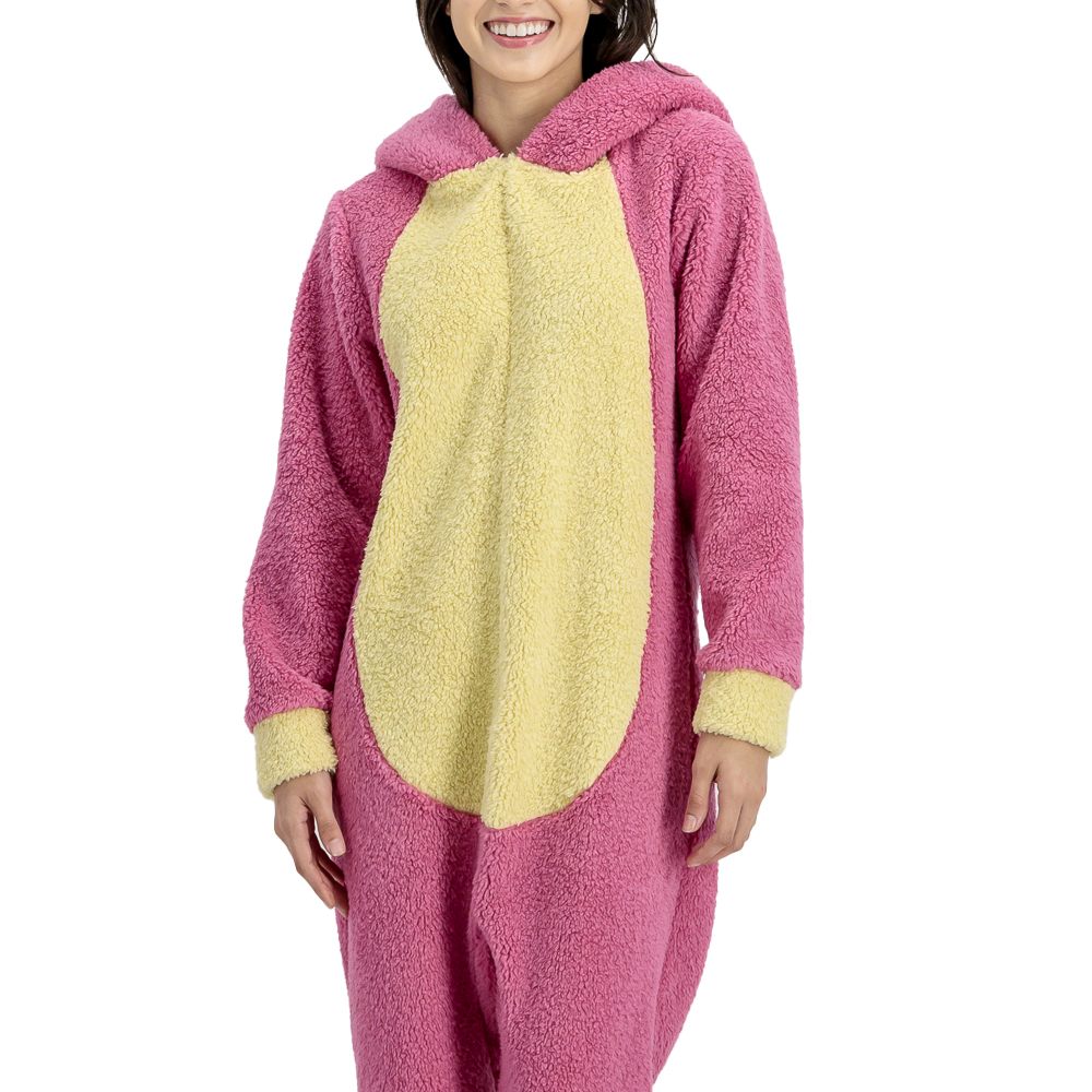 Sumérgete en un mundo de ternura y diversión con nuestro mameluco de diseño Lotso, inspirado en el entrañable personaje de Toy Story. Con mangas largas que se ajustan en los puños para ofrecerte el máximo confort, este mameluco incluye una capucha que no solo te abrigará, sino que también añade un toque adorable a tu look. Su encantador diseño de Lotso te permitirá llevar contigo la esencia de la amistad y la diversión en cada momento. Ideal para relajarte en casa, disfrutar de una tarde de juegos o simplemente para sentirte cómoda y chic, este mameluco es la prenda perfecta para los amantes de Disney de todas las edades. ¡Haz que cada día sea especial y lleno de dulzura con este adorable mameluco de Lotso!