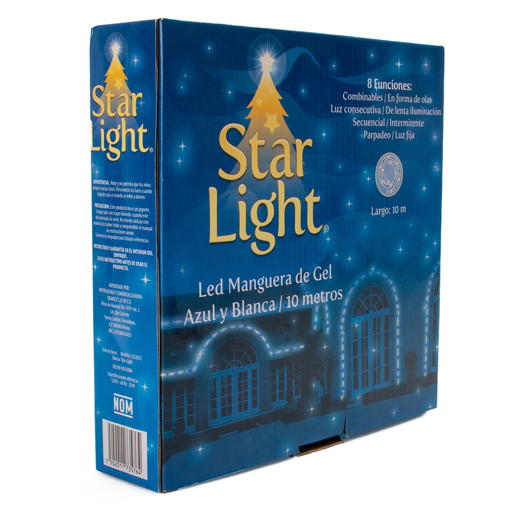 Obtén una decoración brillante con la Manguera de Gel con Luces Led de la marca Star Light, es una excelente opción para colocarla en cualquier rincón de tu hogar, escuela u oficina. Agrégale un toque de luz doble, azul con blanca, a todas tus decoraciones. Su diseño incluye ocho diferentes funciones: combinables, en forma de olas, luz consecutiva, de lenta iluminación, secuencial, intermitente, parpadeo y luz fija.