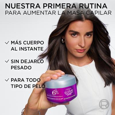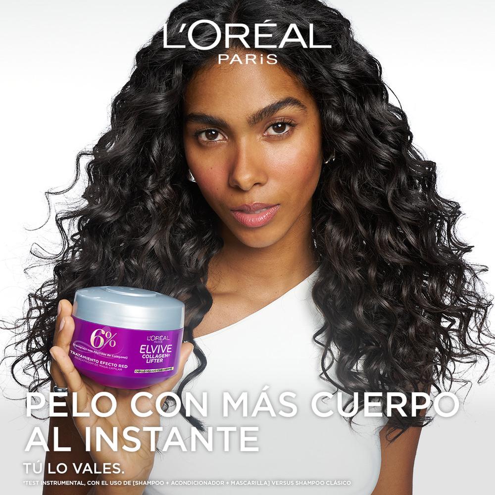 Rescata la densidad de tu cabello con el poder del tratamiento capilar de Elvive. Lleva el cuidado de tu melena al siguiente nivel con la fórmula Collagen Lifter de L’Oréal Paris. Esta mascarilla ultra-concentrada actúa como un verdadero rescatador de masa capilar, específicamente para transformar el cabello delgado y lacio que ha perdido su vigor. Gracias a su innovador complejo con péptidos de colágeno al 6%, este tratamiento envuelve cada fibra creando una red de soporte que ayuda a recuperar el cuerpo y la estructura desde el interior. Es el paso indispensable para quienes buscan una melena visiblemente más densa, con movimiento y una suavidad excepcional sin añadir pesadez.