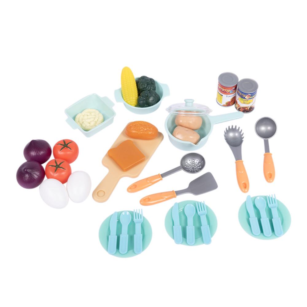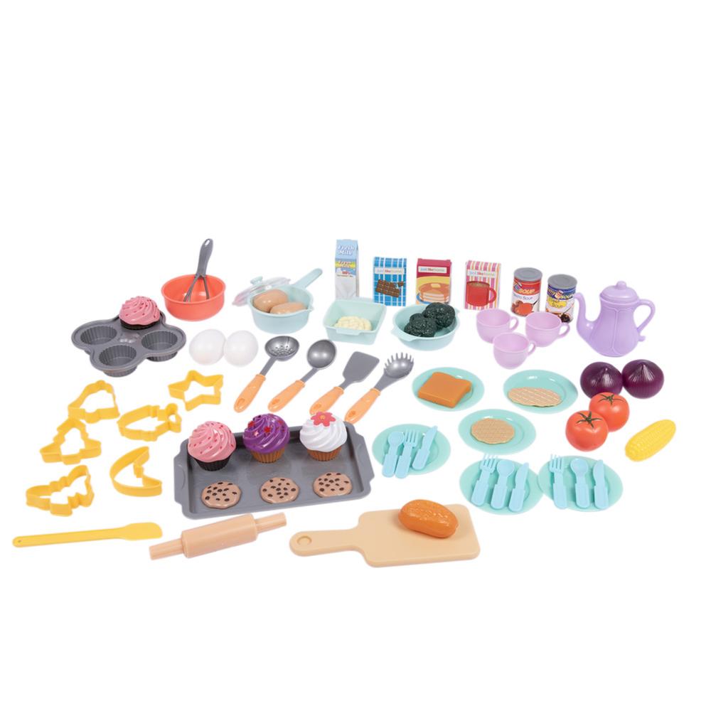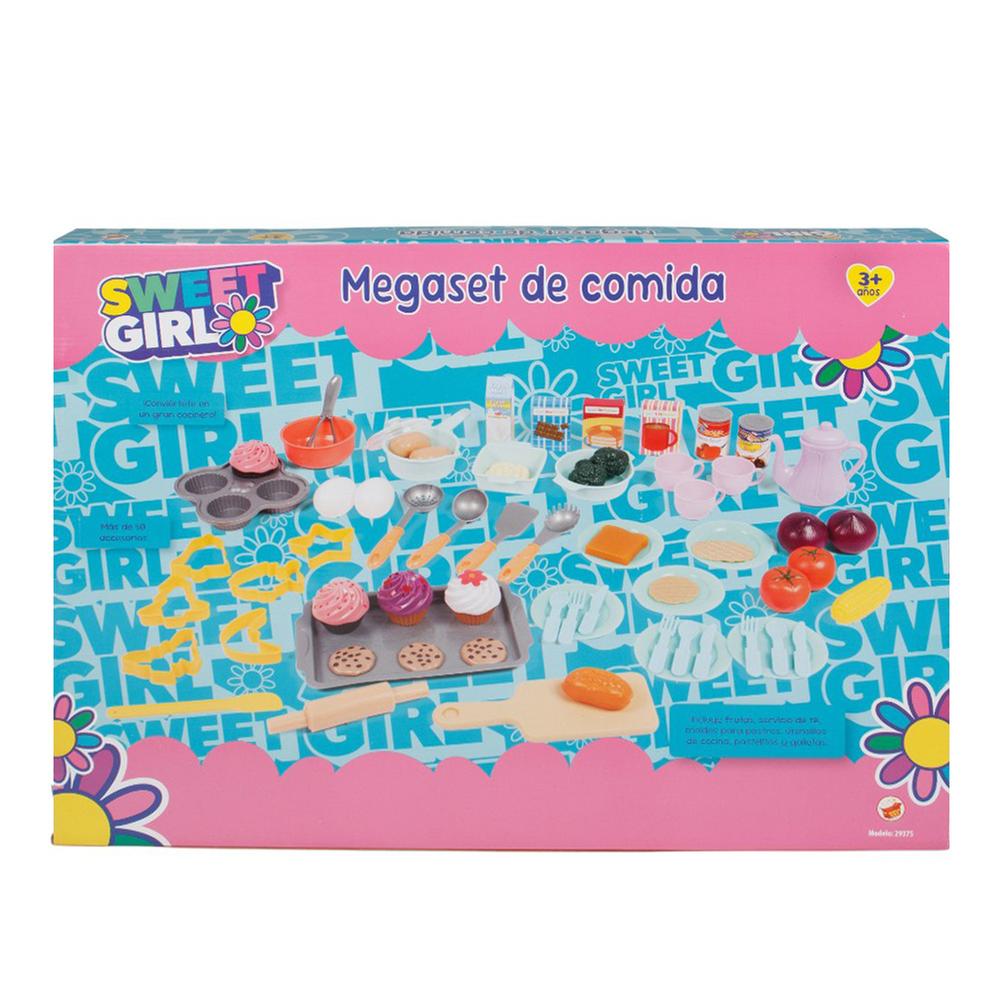 Tus historias serán más sabrosas y entretenidas con el Megaset de Comida de Sweet Girl. Te ofrece una gran variedad de vegetales, postres y utensilios de cocina para compartir en reuniones, juegos u ocasiones especiales con los amigos. Todos los accesorios combinan una presentación impecable y colorida para convertir cada prueba en una memorable experiencia. Además, los niños tendrán la oportunidad de deleitarse con sus alimentos preferidos en la comodidad del hogar.