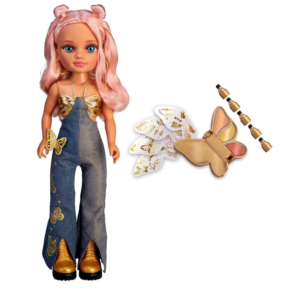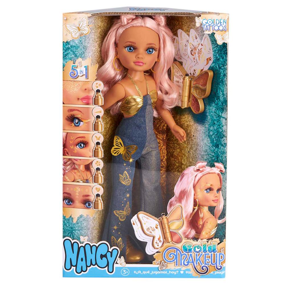 ¿Quieres que tus pequeñas se entretengan mientras exploran el mundo de la belleza? Con Nancy Gold Makeup podrán hacerlo de una manera creativa y emocionante. Esta fantástica muñeca trae un completo kit de maquillaje con un lápiz de cinco puntas, sombras para ojos y tatuajes temporales dorados. Con esto, crearán diseños brillantes y originales. Además, todo se guarda en una encantadora caja en forma de mariposa.