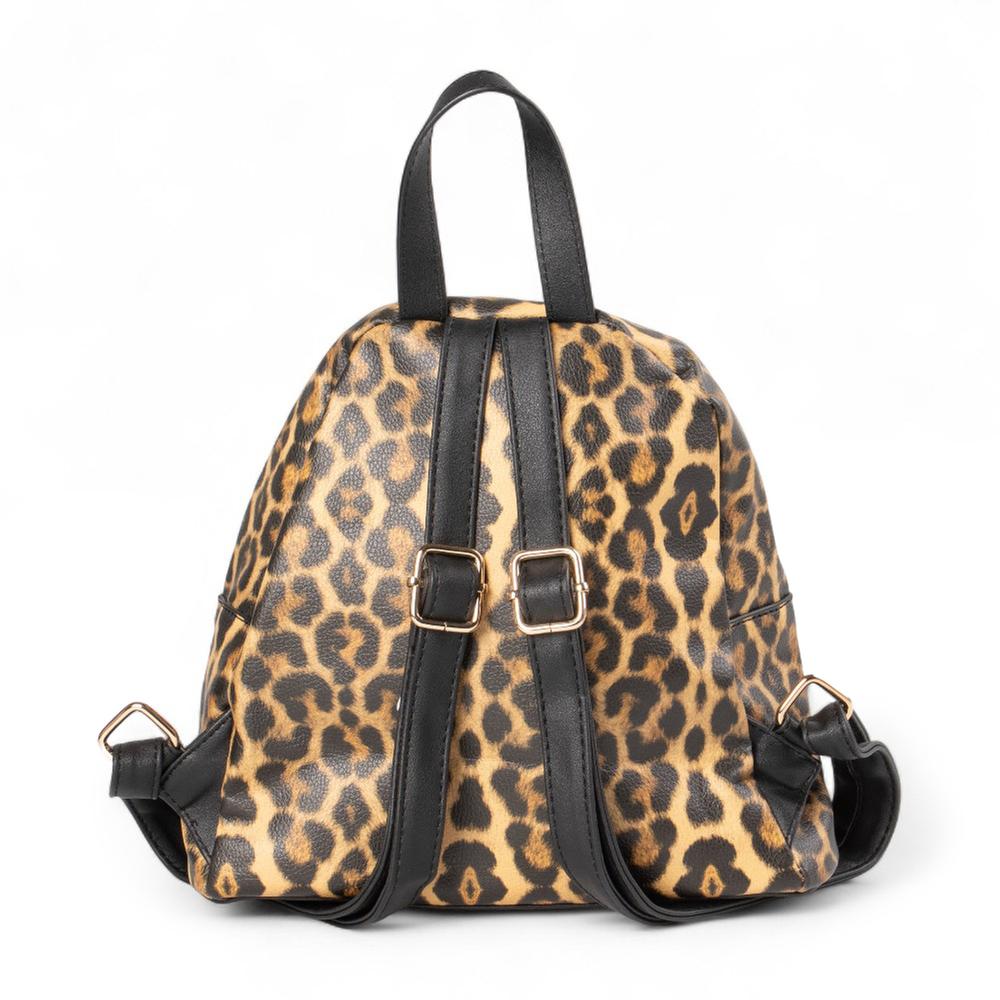 Esta mochila para mujer combina un diseño animal print vibrante con cierres de cremallera que protegen tus pertenencias, mientras que sus correas ajustables y cadena decorativa aportan un toque moderno y funcionalidad para un uso cómodo y con estilo.