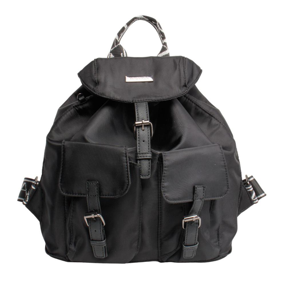 Mochila funcional con solapa y hebillas que aportan un estilo moderno. Incluye accesorio adicional para mayor practicidad.
