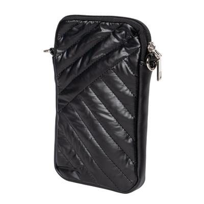 Un accesorio sofisticado que combina elegancia y brillo. Su formato vertical y diseño capitonado ofrecen un estilo moderno, ideal para complementar tus outfits diarios o de noche con un toque refinado.