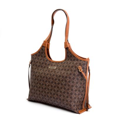 Bolsa tote café con diseño full print y doble asa, práctica y moderna para el uso diario.