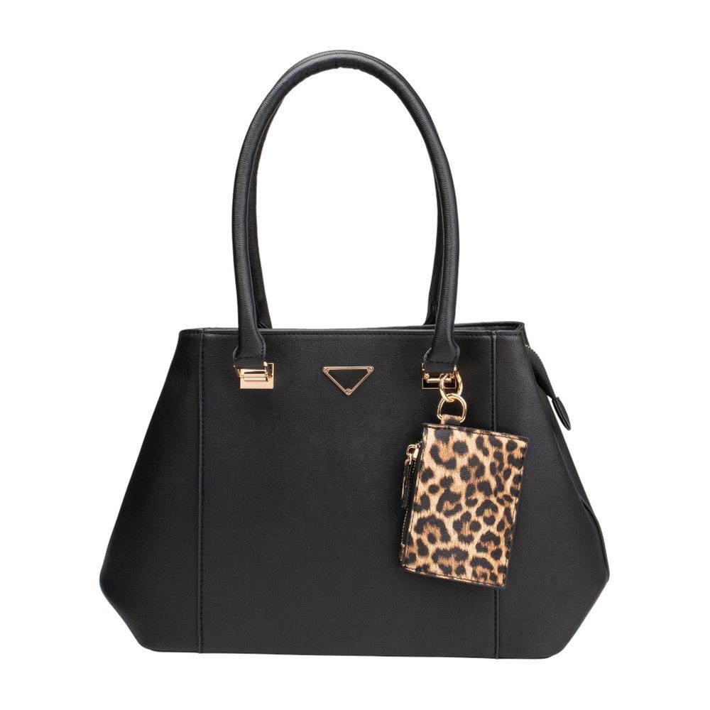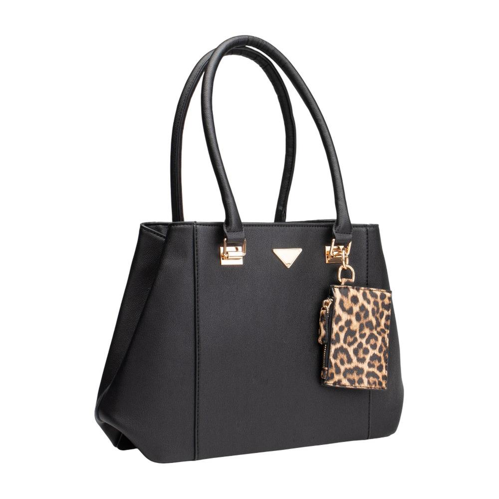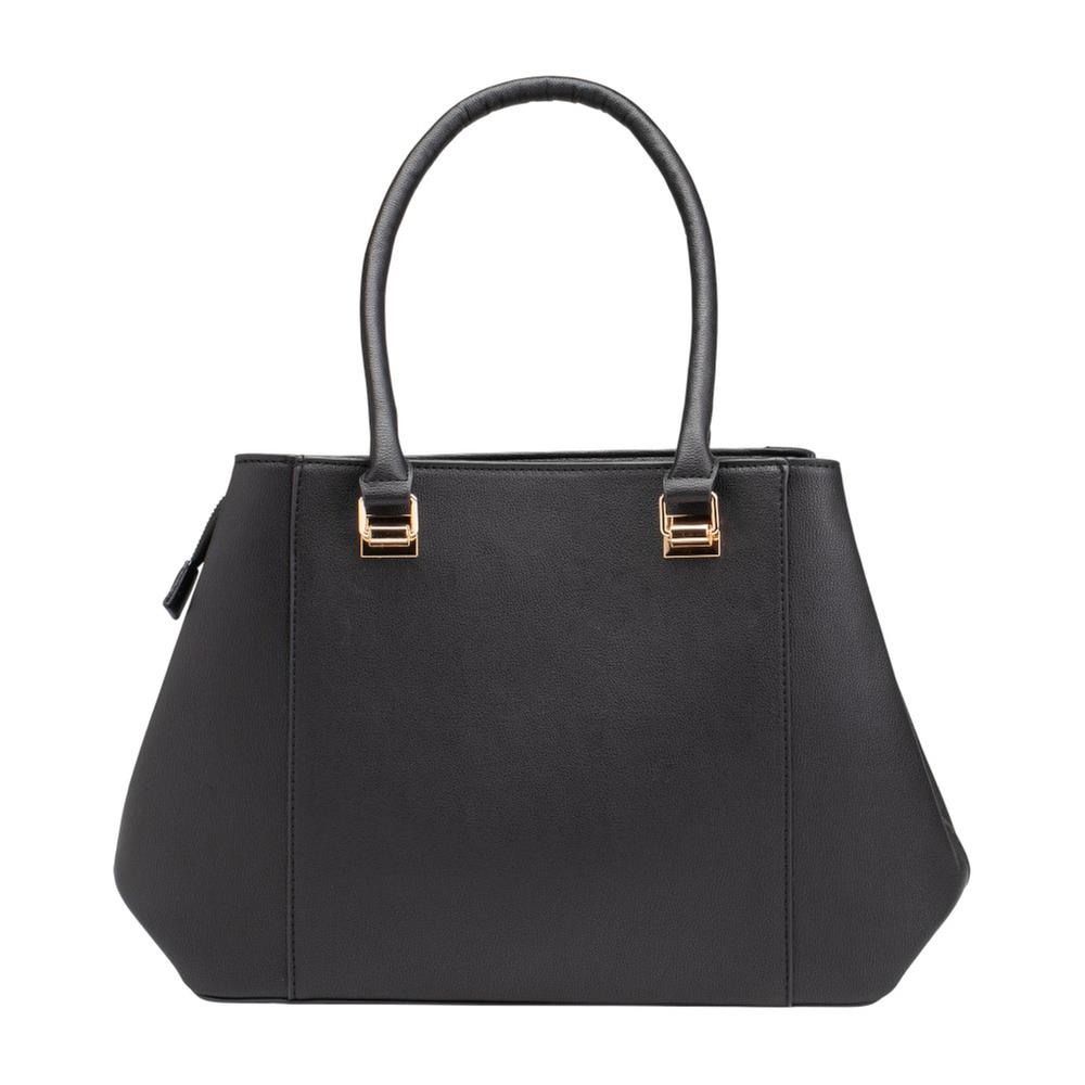 Elegancia en la sencillez. Esta bolsa de diseño liso se complementa con una placa decorativa sutil. Posee un doble asa y un compartimiento amplio, además de incluir un monedero para una mayor organización