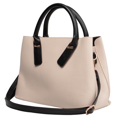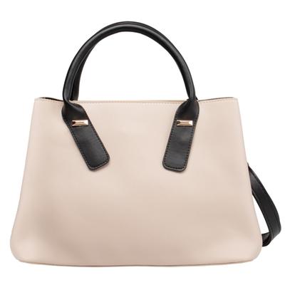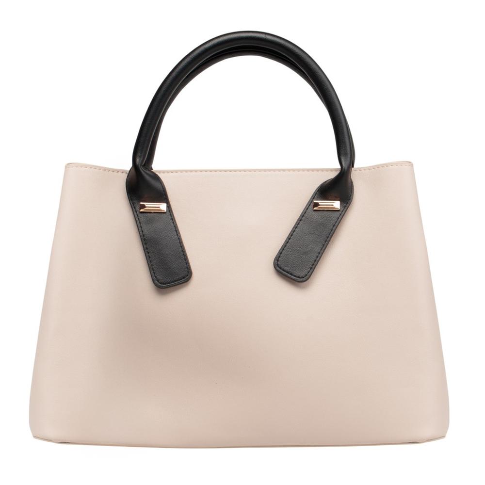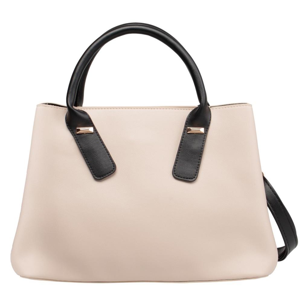 Bolsa lisa con asas en contraste que brinda un estilo elegante y versátil. Incluye correa desmontable para mayor comodidad.