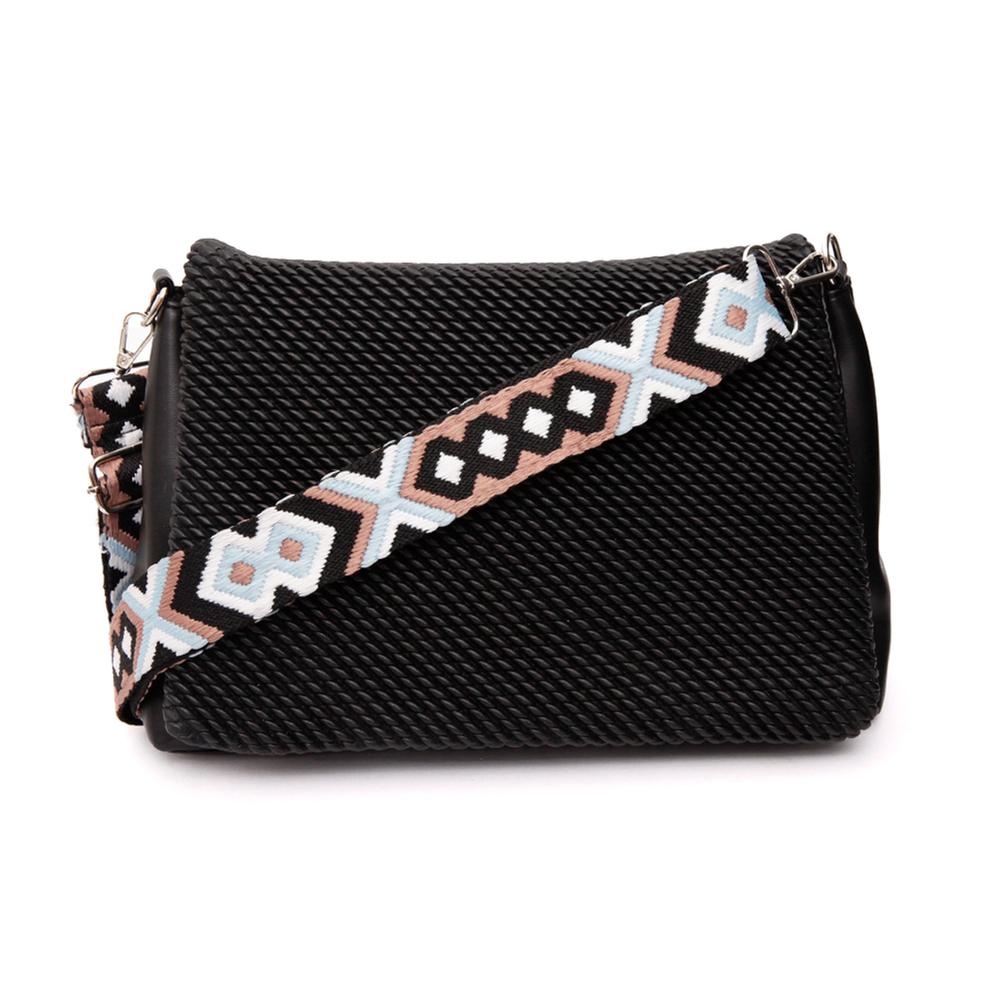 Complementa tu estilo con este crossbody de textura trenzada. Su diseño texturizado crea un efecto moderno y único, mientras la correa con patrón añade personalidad. Las hebillas decorativas aportan un toque distintivo manteniendo un look elegante y versátil.