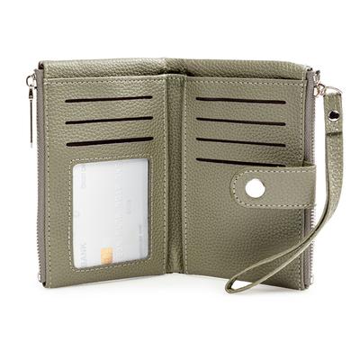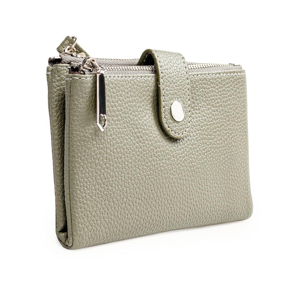 Cartera para mujer que destaca por su diseño con textura elegante y funcionalidad práctica, ideal para organizar tus tarjetas en sus ranuras y mantener tus pertenencias seguras con cierre con broche y compartimento con zipper. Perfecta para complementar tu estilo diario con un toque sofisticado.