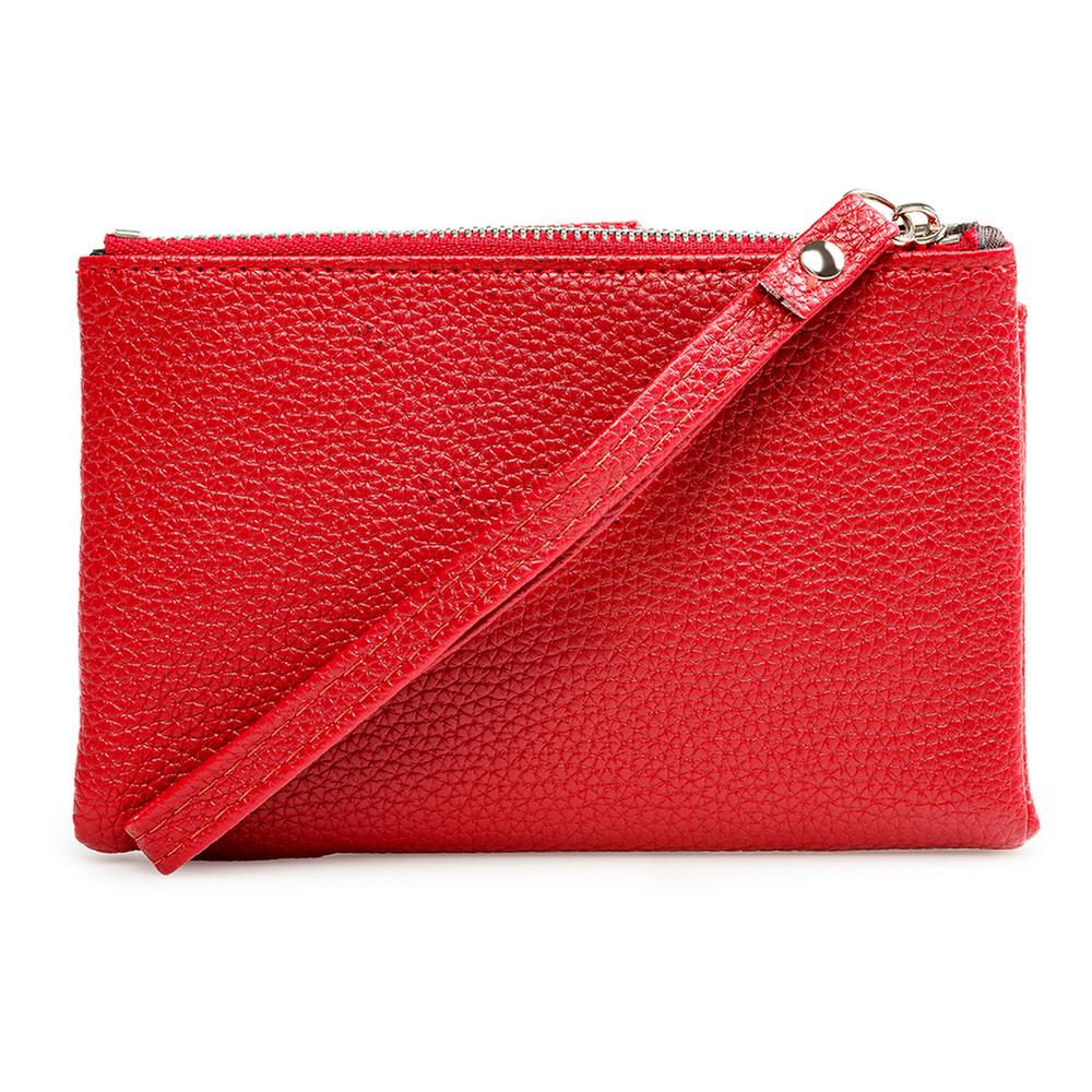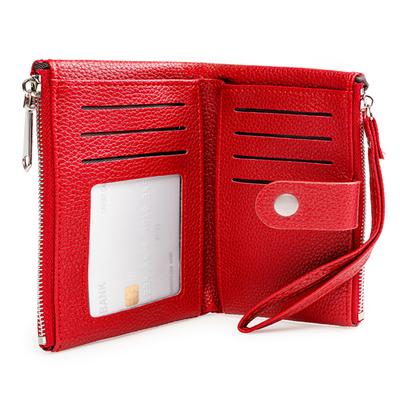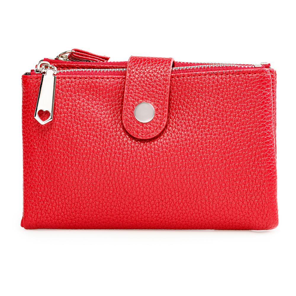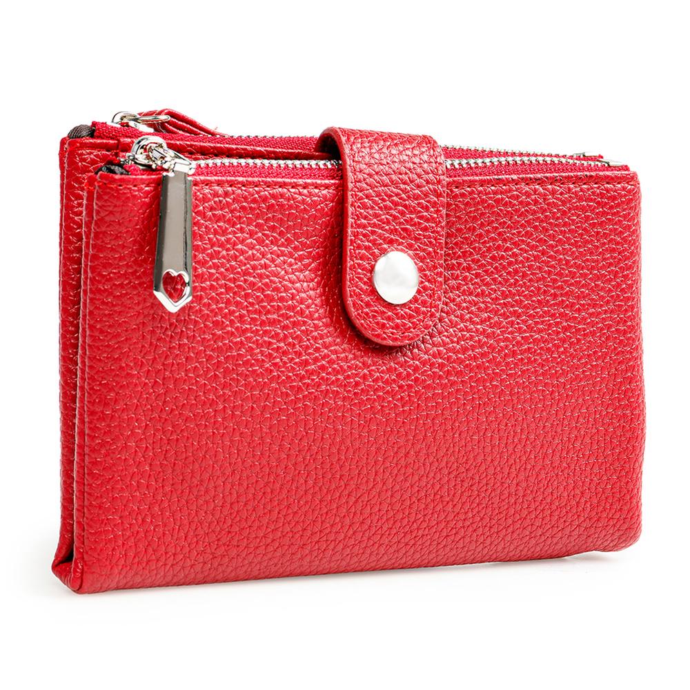 Esta cartera combina funcionalidad y estilo con su diseño con textura que aporta un toque sofisticado mientras mantiene tus tarjetas organizadas en sus múltiples ranuras. Su cierre con broche asegura tus pertenencias con facilidad, y el compartimento con zipper ofrece espacio adicional para guardar objetos pequeños de forma segura.